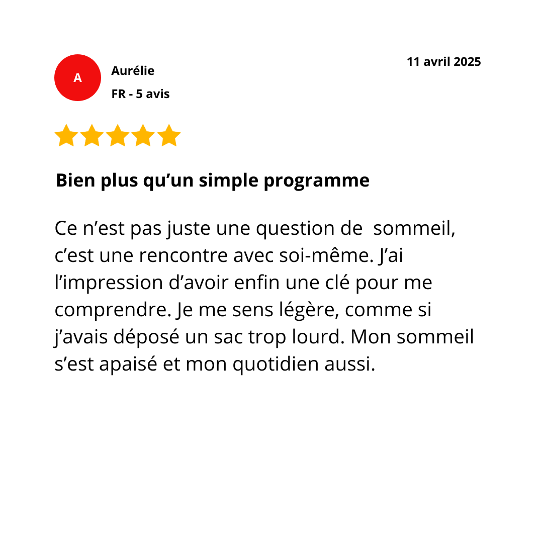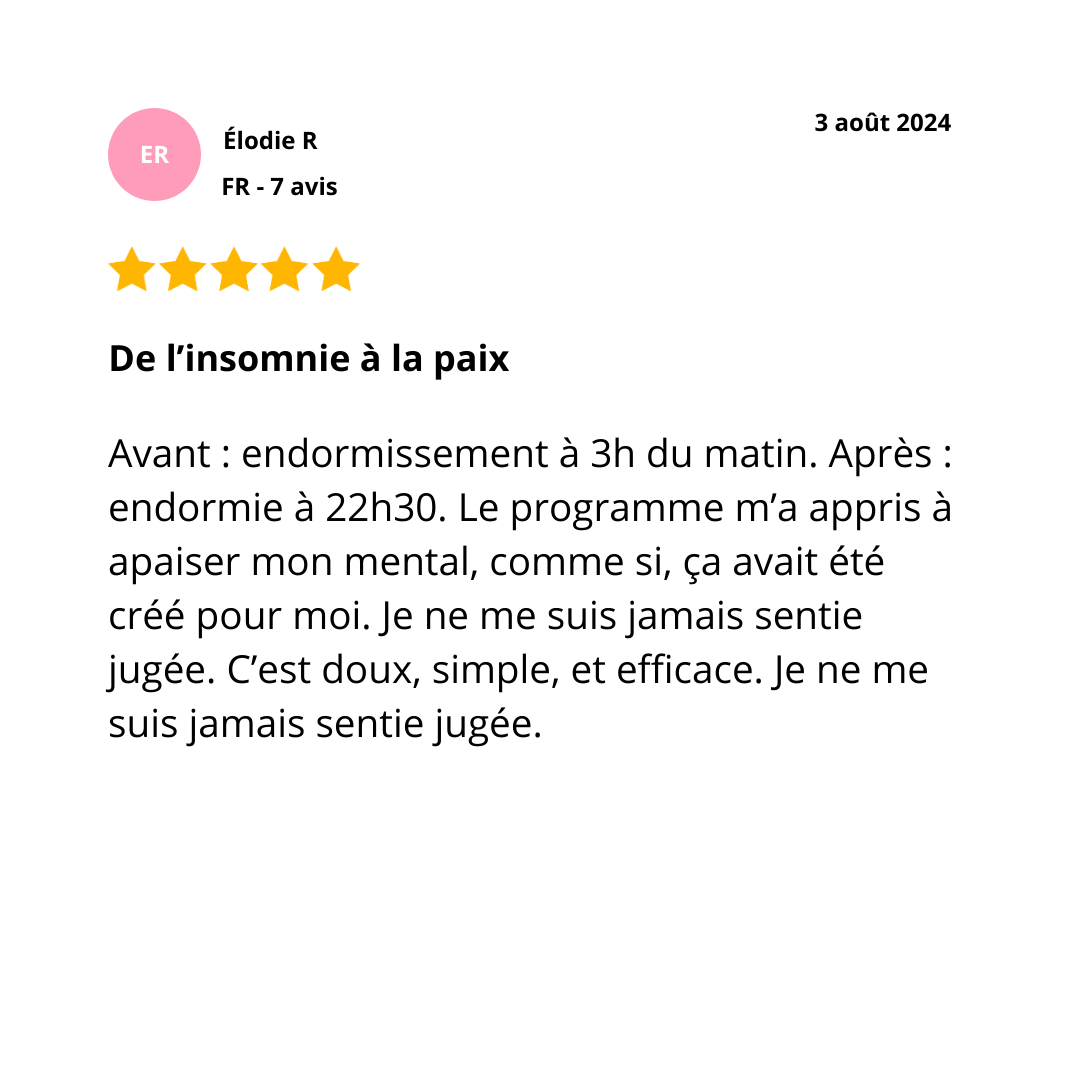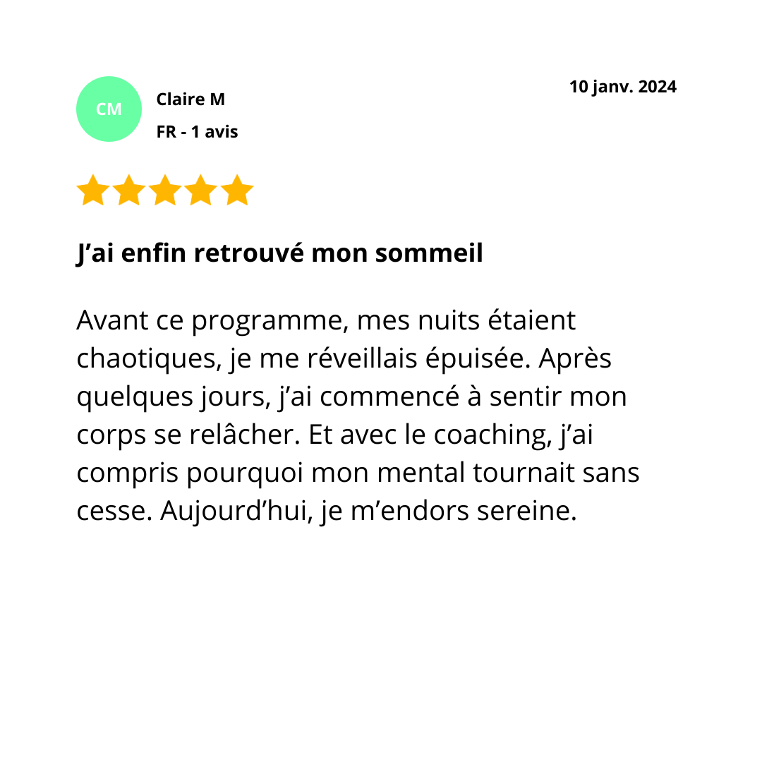 Certaines ressentent un apaisement dès la première nuit, d’autres au bout de quelques jours. L’important, c’est la régularité. Les audios entraînent ton cerveau à ralentir et à retrouver le sommeil plus facilement.